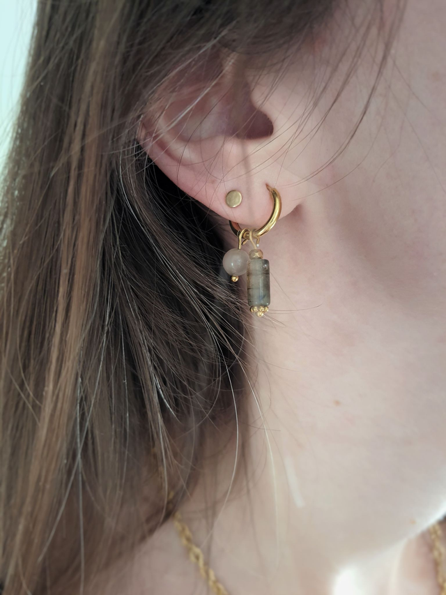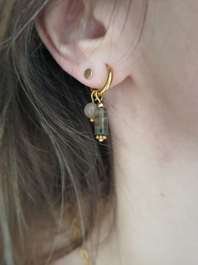 Boucles d'oreilles Labradorite et Pierre de lune - Eclat